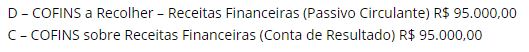 Reversão do valor acumulado na conta COFINS a Recolher – Receitas Financeiras (Passivo Circulante), quando por ocasião da sentença definitiva (em que não há mais recurso), assegurando a vitória da empresa: